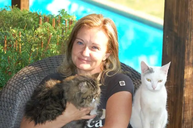 Moira, Owner of The Linden Cat Hotel, taking a break from manual bookings with Dave and Stanley